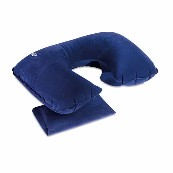 Napihljiva potovalna blazina v žametni torbici. Priljubljeno za uporabo v avtomobilu, vlaku ali letalu.