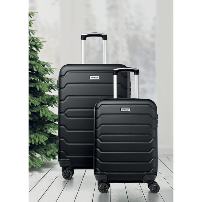 Set dveh kovčkov(60cm in 50cm). 1 glavni in notranji predel. Vključuje varnostno ključavnico na obeh kovčkih. S kovinsko ploščo za tisk logotipa.